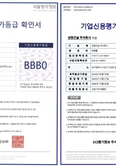 2025년 덕재건설(주), 상명건설(주) 신용평가 등급